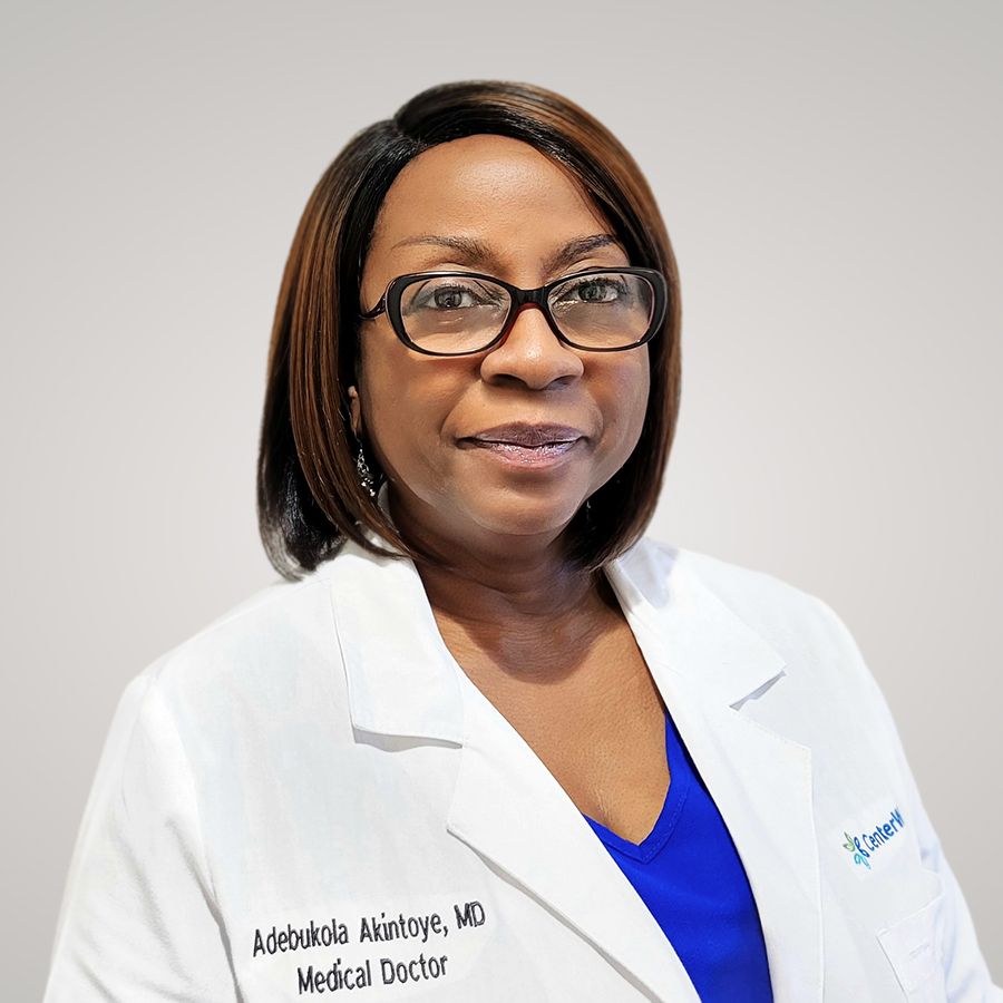 Dr. Adebukola O. Akintoye, M.D., joined CenterWell as a board eligible internal medicine specialist. She has worked as a healthcare professional since 1985. A graduate of the University of Lagos College of Medicine, she completed an Internal Medicine Residency at the State University of New York Medical-Dental Consortium. She has obtained a Distinction in Clinical Psychology, a nomination for Distinction in Microbiology, and was awarded the Winthrop Scholarship for a Deserving Female Student. Before joining CenterWell in 2023, Dr. Akintoye was a contract physician with Locum Tenens companies in outpatient medicine, primary care, urgent care, and occupational medicine since 2008. She practiced as a Contract Physician at Medlink, a federally qualified health center that cares for low-income, uninsured, and underinsured patients. Dr. Akintoye chose healthcare because it provides innumerable opportunities and the immense privilege to help better the lives of people of all ages. In her free time, she enjoys serving at her Church, spending time with family, and traveling.